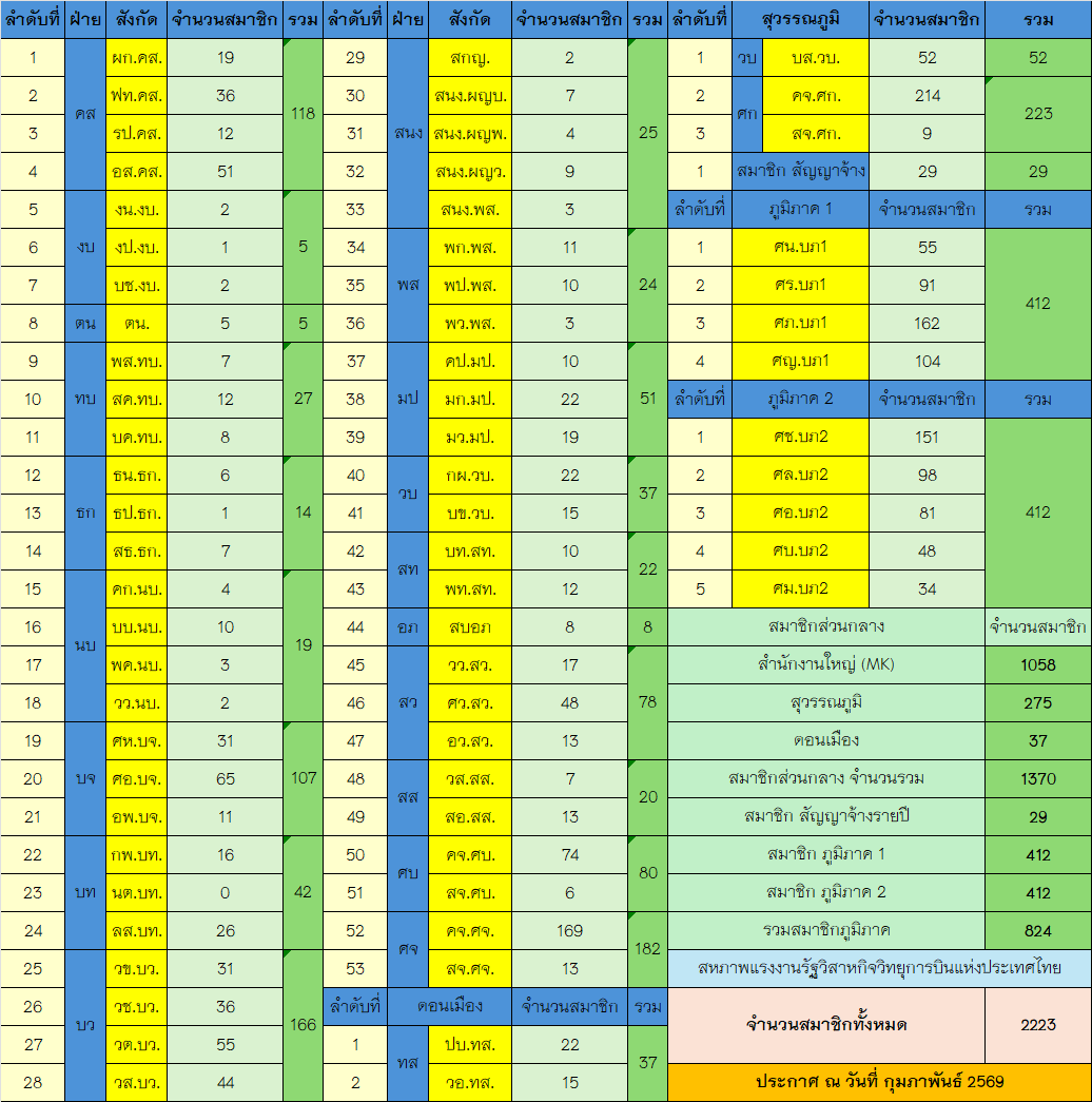 จำนวนสมาชิกสหภาพแรงงานรัฐวิสาหกิจวิทยุการบินแห่งประเทศไทย